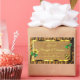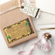 Make a lasting impression with this elegant and modern product label design featuring a brown coloured wood grain and natural tree bark with a pretty golden frame and cute green butterflies.