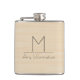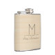 The flask itself is fine. It’s a cheap flask, obviously bought in bulk, however am prepared to overlook that. Given that it is a personalized item, I would have liked to have seen gift boxing instead of the generic packaging. Terrible printing, and/or quality. It’s a cheap, tacky vinyl. It is not cut straight and is also applied in a way that it is overhanging the bottom, causing the glue to catch on items and it will eventually roll and tear, damaging the wrap.