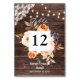 Dress up your wedding or party tables with this chic wood, lace, string lights, and blush & peach floral Table Number Card.