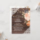 Invite your friends & family to your bridal shower with this wood, lace, string lights, & blush & peach floral bridal shower invitation.