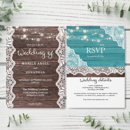 Carry your theme throughout your wedding with this wood, lace, & string lights touch to your wedding guest book.