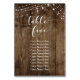 This rustic, elegant wedding and event invitation suite of designs presents some popular wedding design trends combined in a fresh way. With a rich brown wood background and dual strings of twinkling light accents, I've combined a beautiful modern script font to render graphics depicting key words and phrases in the design set. In this table card, the calligraphy text reads "table five". A template field enables you to list the table guest's name. This collection is ideal for a country or casual post-wedding reception or celebration event. All layers are unlocked to allow you as much control as you desire. // 19 //