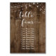 This rustic, elegant wedding and event invitation suite of designs presents some popular wedding design trends combined in a fresh way. With a rich brown wood background and dual strings of twinkling light accents, I've combined a beautiful modern script font to render graphics depicting key words and phrases in the design set. In this table card, the calligraphy text reads "table four". A template field enables you to list the table guest's name. This collection is ideal for a country or casual post-wedding reception or celebration event. All layers are unlocked to allow you as much control as you desire. // 19 //