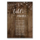 This rustic, elegant wedding and event invitation suite of designs presents some popular wedding design trends combined in a fresh way. With a rich brown wood background and dual strings of twinkling light accents, I've combined a beautiful modern script font to render graphics depicting key words and phrases in the design set. In this table card, the calligraphy text reads "table nine". A template field enables you to list the table guest's name. This collection is ideal for a country or casual post-wedding reception or celebration event. All layers are unlocked to allow you as much control as you desire. // 19 //
