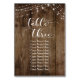 This rustic, elegant wedding and event invitation suite of designs presents some popular wedding design trends combined in a fresh way. With a rich brown wood background and dual strings of twinkling light accents, I've combined a beautiful modern script font to render graphics depicting key words and phrases in the design set. In this table card, the calligraphy text reads "table three". A template field enables you to list the table guest's name. This collection is ideal for a country or casual post-wedding reception or celebration event. All layers are unlocked to allow you as much control as you desire. // 19 //
