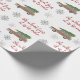 Christmas wrapping paper featuring a pattern on wood panelled vehicles with Christmas tree tied to top. Text says, "oh what fun it is to ride" design also features snowflakes.