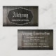 Wood Plank Construction Business Card A great business card for that manly man or business owner who is a handyman. Features a wood plank background and a metal border that sits ontop that holds all your business text. very clean and professional while staying rustic and tough. Great for any blue collar worker or construction business.