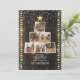 This custom holiday photo card is perfect for any family wanting to send this season's greetings to their loved ones. The design features a rustic, dark wood background with a string lights on each side and subtle snow flakes at the top. In the centre are 6 square photos arranged to represent a Christmas tree with a gold star at the top and a message at the bottom that reads "Merry Christmas with love from" and then your family name.