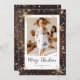 Custom rustic wood sparkly Christmas cards featuring snowflakes, stars and snowfall on a rustic wood background. Easily personalise these rustic photo Christmas cards with your image, text, and a family name.