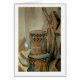 Warm and cool watercolor still life of a wood stove and sythe. Add a rustic touch to a gift or greeting. Customise for a family reunion out in the country or camping adventure.