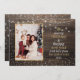This holiday photo card is perfect for any family looking for a special greeting card for their loved ones. This design features a gorgeous rustic wooden background with cute string lights and a subtle snowflake overlay to give it that festive feel. On the left-hand side is your image with a delicate golden border. On the right is some elegant typography in a Christmas tree shape that reads "Merry Christmas & Happy New Year with love from" and then your family name and date.