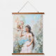 The polyester fabric displayed many wrinkles and several sharp creases throughout. At the bottom of the tapestry, I noticed a bulge in the fabric because it was not pulled tight enough before being connected to the wooden boards. It took me over an hour to spay water on the tapestry before putting it on an ironing board where I used a warm iron over a polyester cloth to remove the wrinkles and creases in the material. I was able to get out the wrinkles and creases that made that tapestry look as beautiful as its picture.