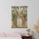 The polyester fabric displayed many wrinkles and several sharp creases throughout. At the bottom of the tapestry, I noticed a bulge in the fabric because it was not pulled tight enough before being connected to the wooden boards. It took me over an hour to spay water on the tapestry before putting it on an ironing board where I used a warm iron over a polyester cloth to remove the wrinkles and creases in the material. I was able to get out the wrinkles and creases that made that tapestry look as beautiful as its picture.
