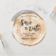 That perfect Save the date card for your rustic wedding theme would have elements of wood grain. I wanted to design a round card imitating a wood, disc slice you often see at beautiful and romantic weddings. Customise the bride and groom names, wedding date, location and include your wedding website with your photo. Delete the wedding website if it doesn't apply to you.