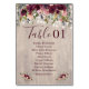 With a muted, rustic wood background, strings of twinkling lights, and watercolor burgundy and blush pink floral accents, I've combined a pretty script and a traditional serif font. Use the provided template fields to update as needed. And if you wish to further edit the actual design, you are able to do this as well! All layers are unlocked to allow you a great deal of flexibility and design control. And fonts, as well as their colours, can be changed if you see fit. I've provided a variety of styles you might use for your own reception tables; this piece has placeholders for those seated at the table. Other options merely include the table number.