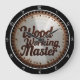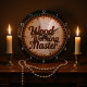 This image presents a round wall clock meticulously designed to resemble a vintage circular saw blade. The clock face has a brushed metallic silver appearance in the centre, subtly marked with what looks like distressed elements and faint circular patterns. The outer ring is a dark, rusty brown, forming the distinct, jagged teeth of a saw blade. Small, round "rivet" details are visible along the inner edge of this rusty ring. The words "Wood Working Master" are boldly inscribed in the centre of the clock face in a dark brown, stylised script with a subtle three-dimensional effect. "Wood" and "Master" are in larger, more decorative fonts, while "Working" is smaller and nestled between them. Black hour and minute hands emanate from the central hub, but there are no traditional numbers on the clock face, giving it a minimalist and thematic appearance. This clock is an ideal piece for a carpenter's workshop, a home office with a DIY theme, or as a unique gift for a woodworking enthusiast.