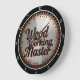 Purchased this online and it got delivered quickly. It was a present for my Dads 70th birthday. He loves clocks so decided to get him one with something written on it. Battery went in and it started working straight away. Dads had no issues with it. Printing was just how it came up online.