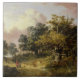 Wooded Landscape with Woman and Child Walking Down Ceramic Tile