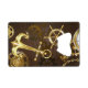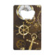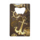 Brown wooden background with sea, mechanical ridge, an antique steering wheel, golden anchor and various gold and brass gears. Steampunk style.