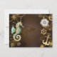 Brown wooden background with sea, mechanical ridge, an antique steering wheel, golden anchor and various gold and brass gears. Steampunk style.