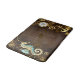 Brown wooden background with sea, mechanical ridge, an antique steering wheel, golden anchor and various gold and brass gears. Steampunk style.