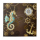 Wooden Background with Mechanical Seahorse Ceramic Tile