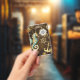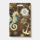 Wooden Background with Mechanical Seahorse ID Badge