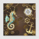 Wooden Background with Mechanical Seahorse Magnetic Invitation