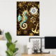 Wooden Background with Mechanical Seahorse Poster
