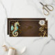 Brown wooden background with sea, mechanical ridge, an antique steering wheel,  golden anchor and various gold and brass gears. Steampunk style.