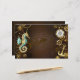 Brown wooden background with sea, mechanical ridge, an antique steering wheel, golden anchor and various gold and brass gears. Steampunk style.
