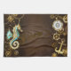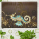 Wooden Background with Mechanical Seahorse Tea Towel