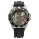 Has heft and feel of expensive stainless steel quartz wrist watches. Solid construction and good looks. Although it had a really top quality rubber strap, I substituted a stainless steel "Shark" style mesh strap, which I think is the most comfortable strap available. Perfect. True colors of original image. Clear, crisp image precisely aligned and spaced.