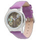 The watch looks exactly as depicted. I was especially pleased with the watch band, which is a nice quality, supple leather. I point this out because an option, which was sold out, was with a multi-colored but clearly plastic band. This is the better choice, in my view.