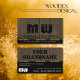Make a lasting impression with this modern and quality business card design featuring stylish dark brown wooden boards with an elegant gold shimmering decor border on a black background.