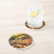 I'm not sure how much moisture these will soak up, haven't had a chance to try them out, but they look good and I like the cork backing. The printing is fine ~ and really looks cool with an artisan's hand made "Hurricane Martini" glass sitting on top of my painting (on the coaster) in my studio.