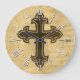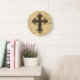 Wooden Christian Cross Fleury Rosewood on Maple Large Clock