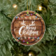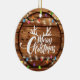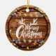 Wooden Rustic Christmas Light Script Family Photo Ceramic Ornament