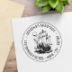 Wooden Sailing Ship Stormy Sea Round Address Rubber Stamp