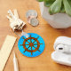 Detailed classic vintage wooden Ships Wheel or Helm, great for boat owners and sailors with a ocean blue background.