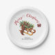 Wooden Sled Fir Branches Green & Red Plaid Paper Plate