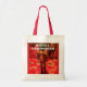 With a Christmas Tree and light's in the back ground. That's on a Tote Bag.