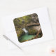 Square photo sticker with the wooden walkway over motion blurred water through the narrow Vintgar Gorge canyon carved into the mountains around Lake Bled in Slovenia.