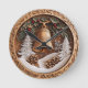 This exquisite wooden artwork features a beautifully carved bell adorned with holly and snow-covered pine cones. The winter landscape includes delicate white trees, evoking a festive atmosphere that captures the spirit of the season.