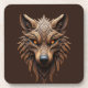 Wooden Wolf Art Carving with Geometric Patterns Coaster
