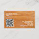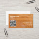 Seven lines of editable text and your custom QR code highlight this woodgrain oak style business card.