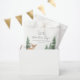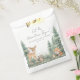 The text is centered at the top in soft gray using a mix of handwritten script and classic serif fonts. The simple and clean layout pairs nicely with the rustic woodland background, adding a charming and gender-neutral touch to your baby shower table setup.