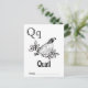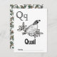 Enrich your book-themed baby shower with an engaging and personalised activity using our Woodland Alphabet Flashcards. Each card showcases a letter of the alphabet, adorned with whimsical illustrations that capture the essence of the Woodland theme. As a delightful twist, your guests can colour and sign their chosen flashcard, adding their own touch of creativity. These signed flashcards become treasured keepsakes for baby as well as an engaging learning tool! This card features letter Q. All letters are available and the entire alphabet collection seamlessly complements the Woodland Storybook Baby Shower line, featuring cosy fall vibes and adorable forest animals. This is a baby shower activity everyone will love, leaving a lasting keepsake for your little one and wonderful memories to cherish in the years to come. ***Please order on Matte paper for easier colouring.***