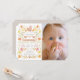 This cute 1st / first birthday photo invitation features a white background with woodland animals which are red fox, squirrel, and bunny / rabbit / hare surrounded by autumn / fall foliage. The reverse side features a greige / grey beige background with white polka dot patterns. Personalise it for your needs. You can find matching products at my store.