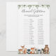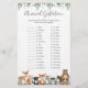 Woodland animals themed baby shower animal gestation game card features a watercolor woodland animals illustration and watercolor greenery eucalyptus garland and elegant handwritten style font.